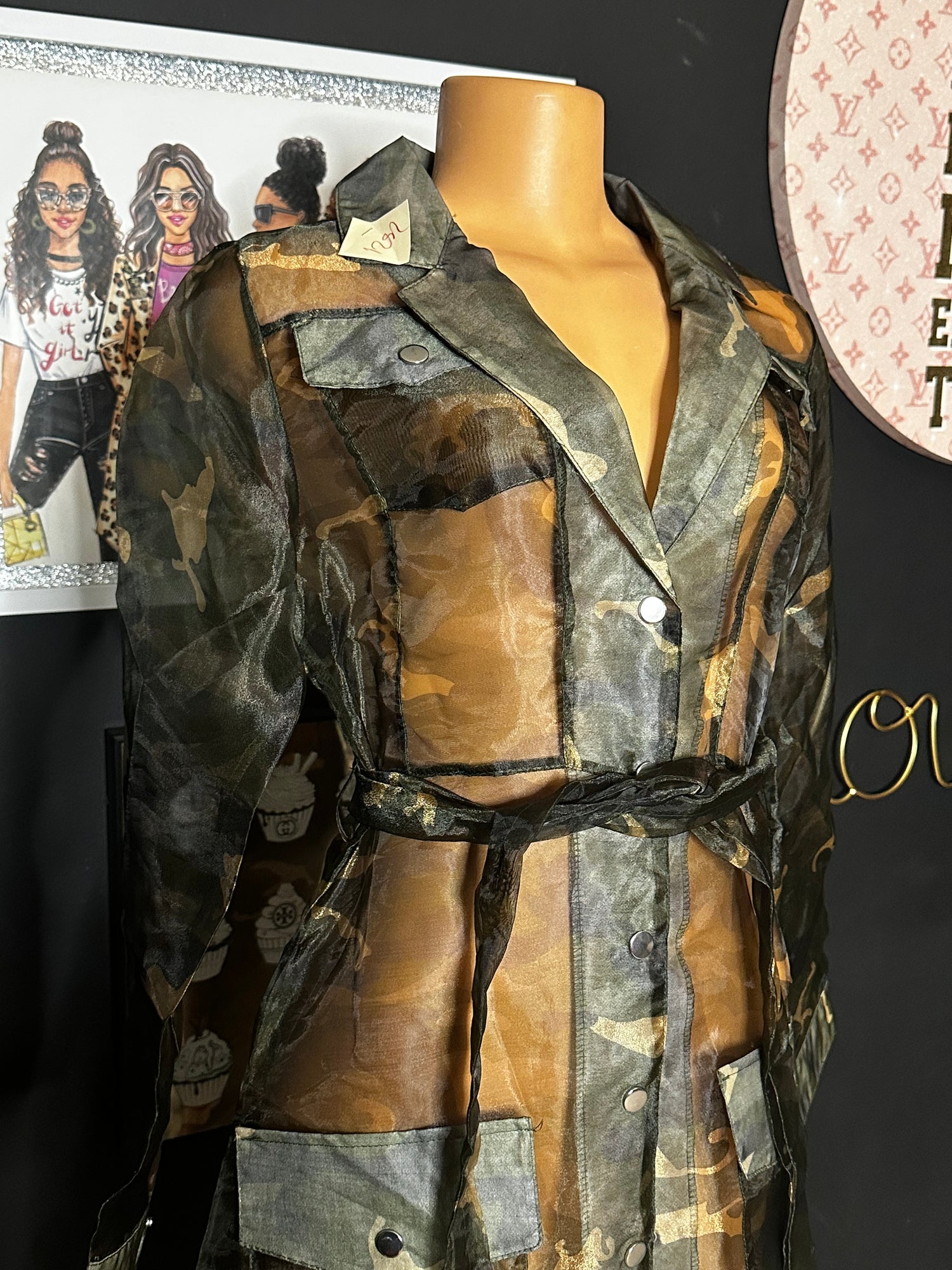 NWT sheer camo duster with belt