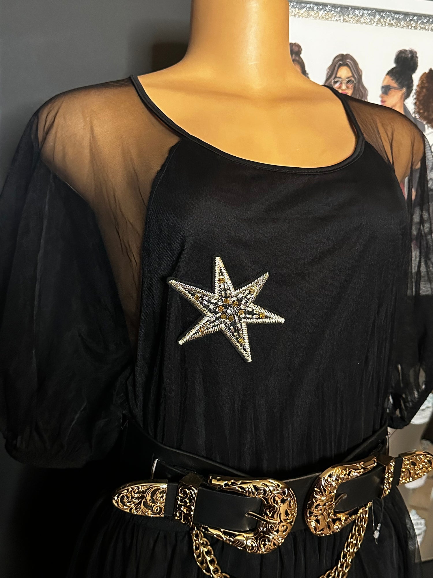 Black short sleeved with star patches
